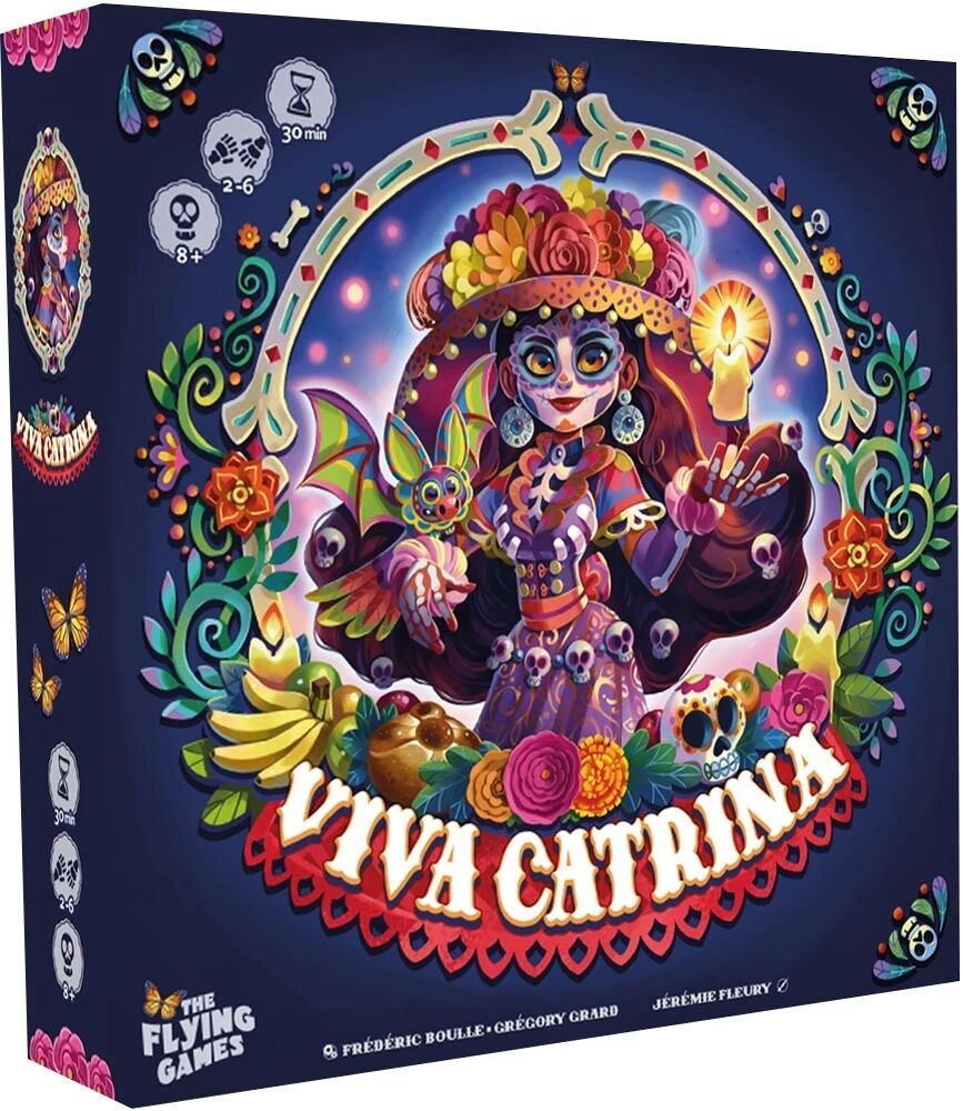 Dans le jeu Viva Catrina , vous incarnez les maîtres de cérémonie du Día de los Muertos et devez organiser une fête somptueuse en l'honneur des défunts. Dans ce jeu de société coloré et stratégique, chaque joueur bâtit son village à l'aide de tuiles Chemin, dans le but d'attirer chimères, visiteurs, papillons et de libérer des envolées de ballons. Chaque décision de placement compte pour optimiser vos connexions et marquer un maximum de points tout en célébrant dignement la Catrina.